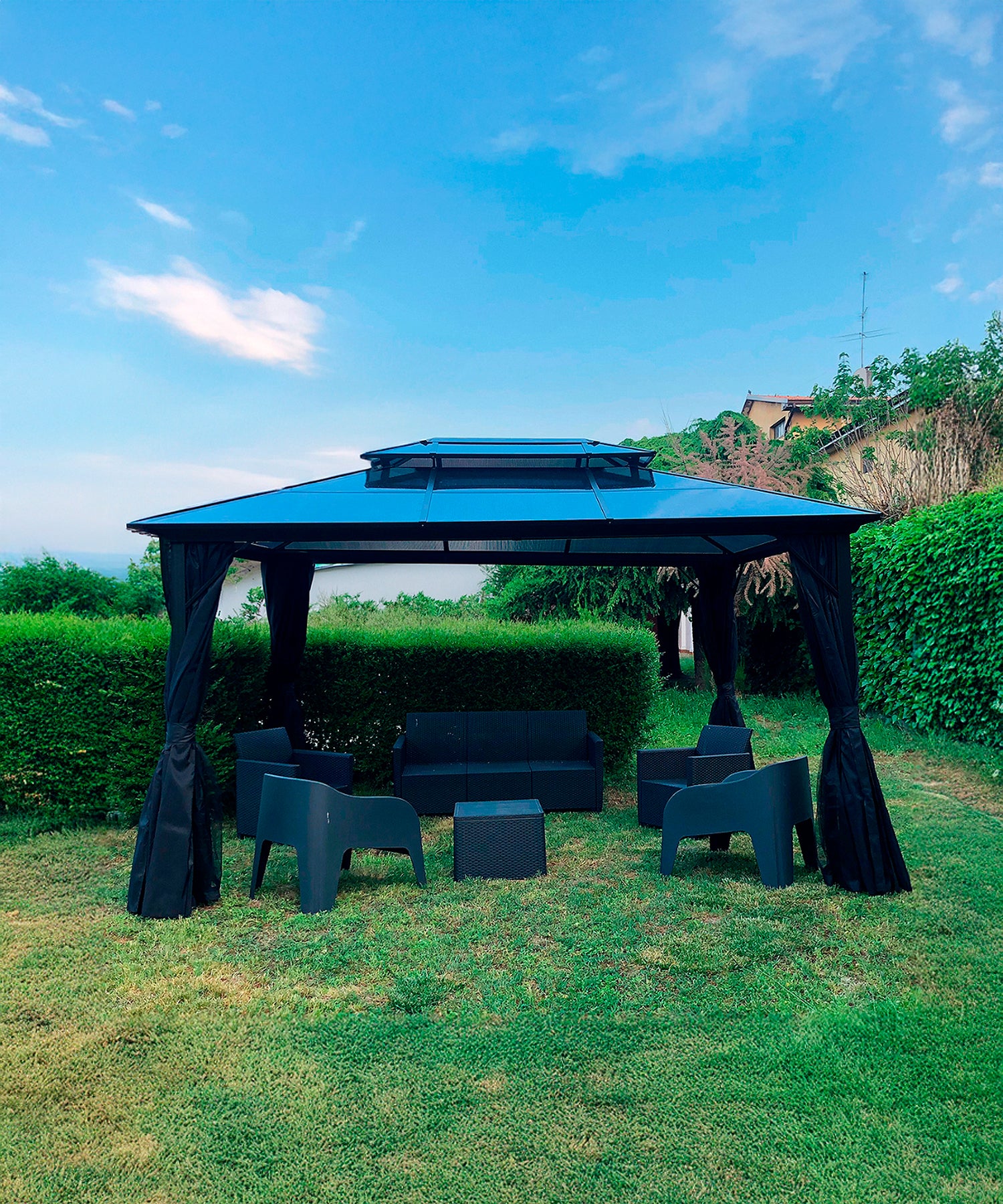 Bioklimatische Pergola pavillon San Pablo Alu+, 4x5,8m, Weiß