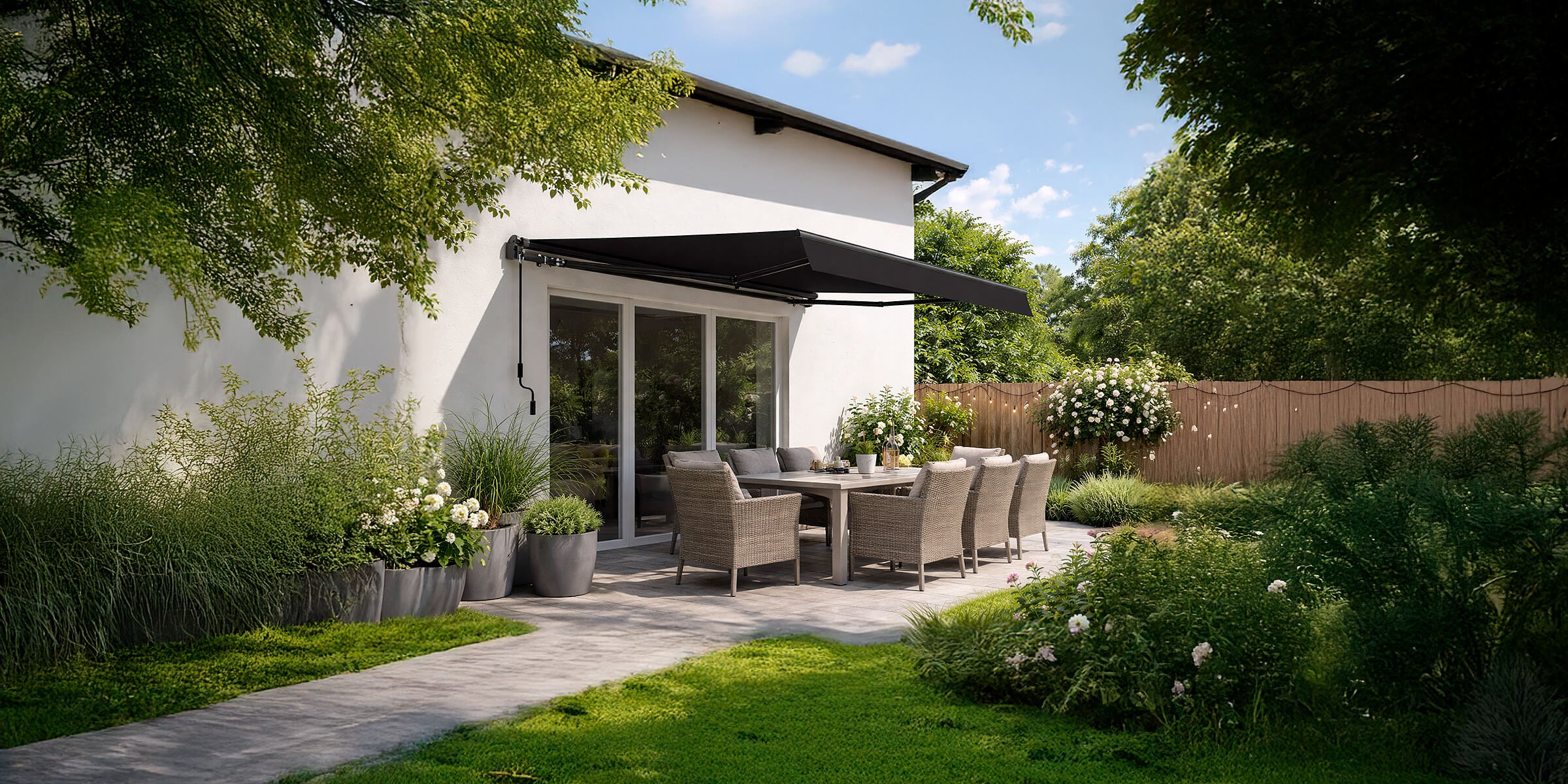 An awning creates a space that feels like an extension of your home and a peaceful sanctuary where you can comfortably enjoy the outdoors. Whether it's a quiet morning coffee or a lively evening gathering, the shaded area beneath an awning becomes a favourite spot for family and friends. It also offers the feel of a conservatory or extra room, blending the indoors with the beauty of your garden.