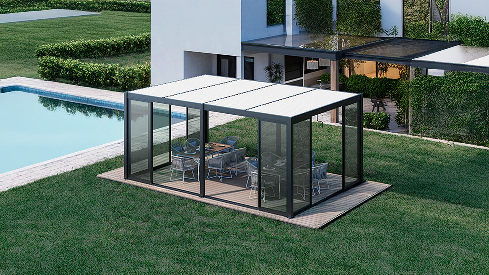 Bioklimatische Pergola pavillon San Pablo Alu+, 4x5,8m, Weiß