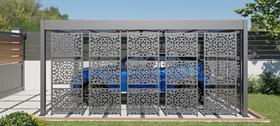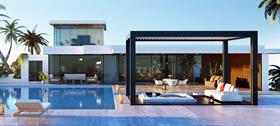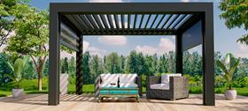 Elegante Pergola mit Lamellendach Eine Pergola mit Lamellendach ist immer leicht zu erkennen. Das flache Dach lässt sich je nach Wetterlage und Stimmung öffnen und schließen. Eine dieser modernen und beliebten Pergolen macht aus Ihrer Terrasse oder Ihrem Garten einen wundervollen Raum. Eine elegante und minimalistische Pergola mit Lamellendach schafft einen schönen Ort zum Entspannen, um den Garten zu genießen oder eine tolle Zeit mit Ihren Freunden bis spät in den Abend zu verbringen,...