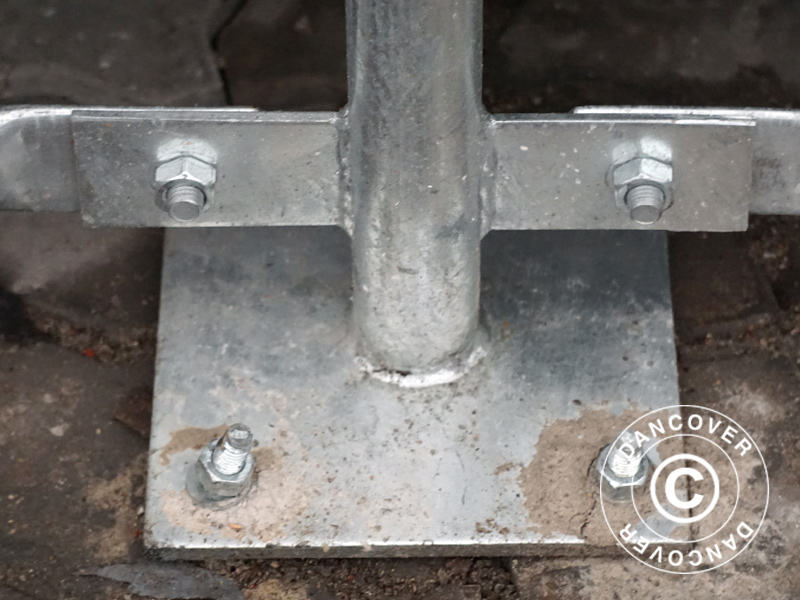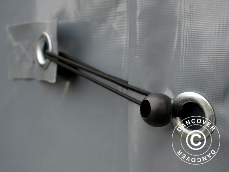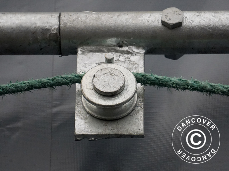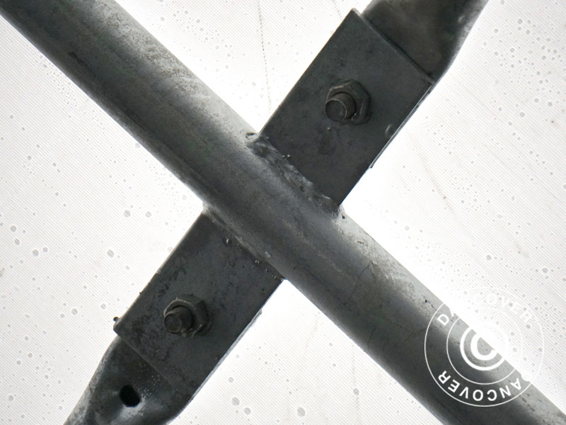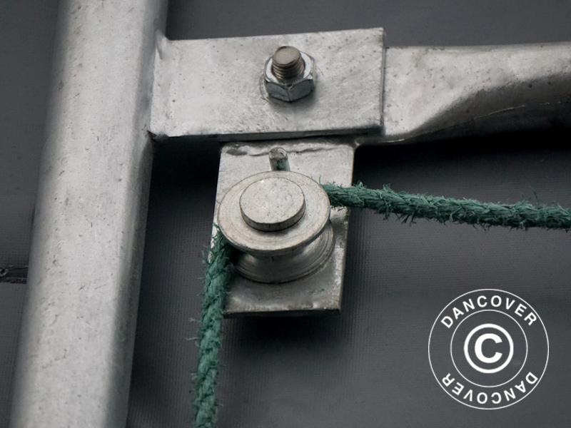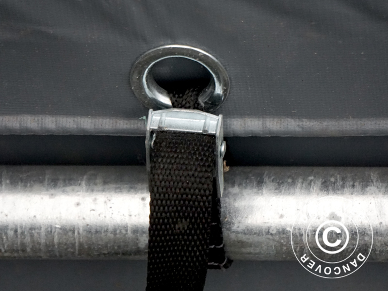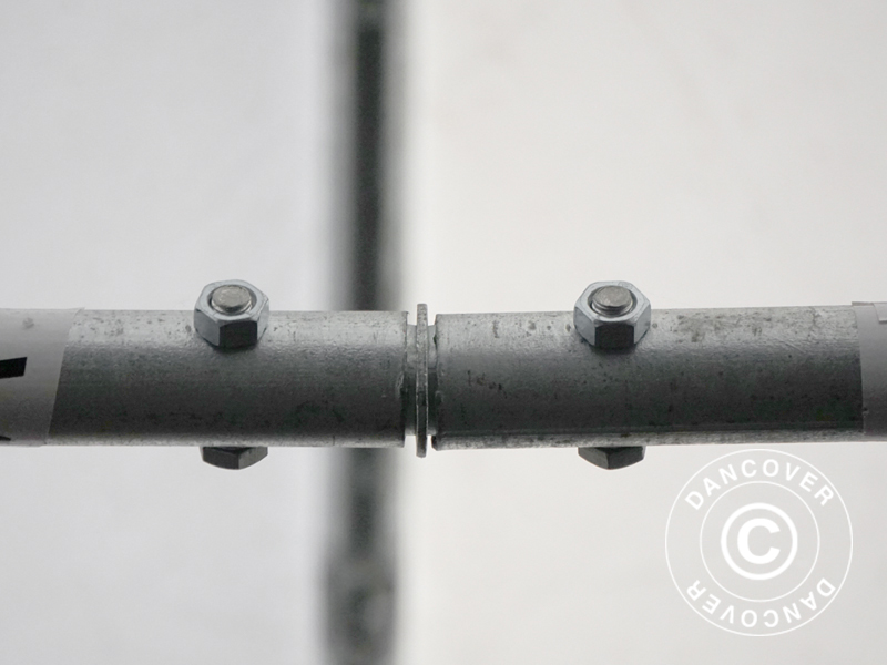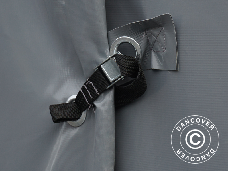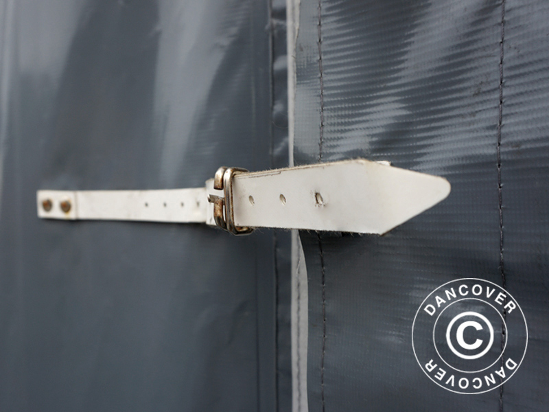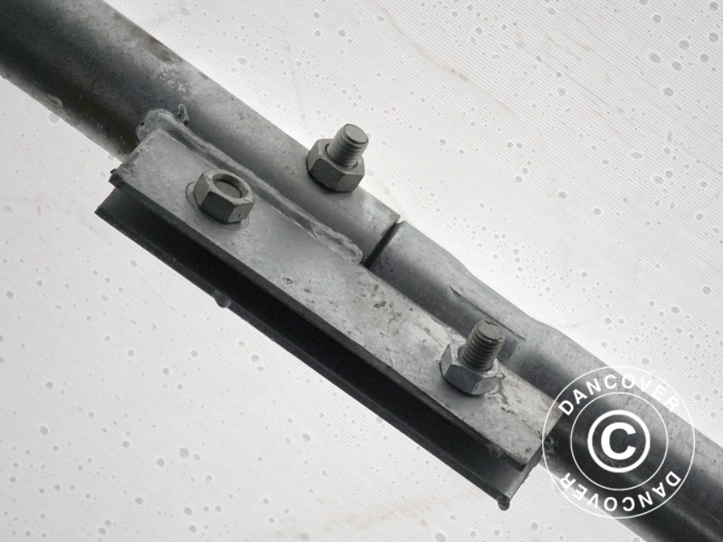 Die Lagerzelte Titanium verfügen über einen stabilen Rahmen mit feuerverzinkten Stahlrohren, um die Langlebigkeit zu ermöglichen, für welche die Dancover-Produkte so beliebt sind. Der Rahmen kann leicht mit robusten Schrauben und Muttern montiert werden. Der Rahmen wird durch Windkreuze aus Stahl für die Seiten- und Giebelwände verstärkt. Die ganze Struktur muss mit den beigefügten, robusten Bodenankern gesichert werden. Die elegante Plane des Lagerzeltes Titanium ist aus strapazierfähigem, flammfestem 600 g/m2 PVC hergestellt.