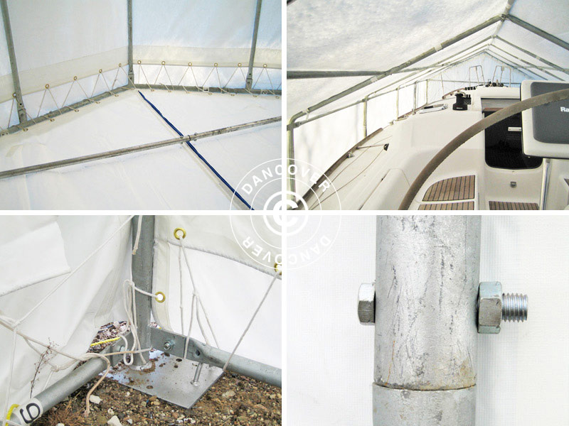Das große und geräumige Lagerzelt Titanium wurde entwickelt, um Schutz für Ihr Segelboot, Motorboot, Ihren Wohnwagen oder andere große Fahrzeuge usw. zu bieten. Aufgrund der vielen Details und bewährten Funktionalität ist das große Lagerzelt der perfekte Ort, um Ihr Boot zu lagern, wenn es sich im Winter oder aus anderen Gründen an Land befindet. Das Lagerzelt Titanium schützt Ihr Wasserfahrzeug gut vor Regen, Schnee, Sonne, Staub und herunterfallenden Blättern. Gleichzeitig bietet Ihnen das geräumige Lagerzelt Platz, um am Boot arbeiten und es instand halten zu können, während es im Zelt aufbewahrt wird. Wenn Sie im Zelt arbeiten, sind Sie normalerweise vor schlechtem Wetter geschützt, weshalb das Boot für die nächste Jahreszeit bereit sein wird, selbst wenn das noch nicht auf das Wetter zutrifft.