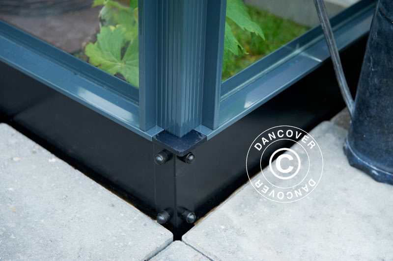 Vi anbefaler en tilpasset og galvaniseret drivhussokkel, der både vil skabe yderligere stabilitet og øge drivhusets samlede højde med 12 cm. Det giver sammen med den i forvejen gode sidehøjde på drivhuset en endnu bedre udnyttelse af hele drivhuset, så man kan få glæde af bl.a. agurker og andre klatreplanter helt ude i siderne af drivhuset. Det giver naturligvis også lidt mere rumfornemmelse, når man vil bruge drivhuset som lysthus og opholde sig i det helt særlige miljø, som et drivhus skaber.