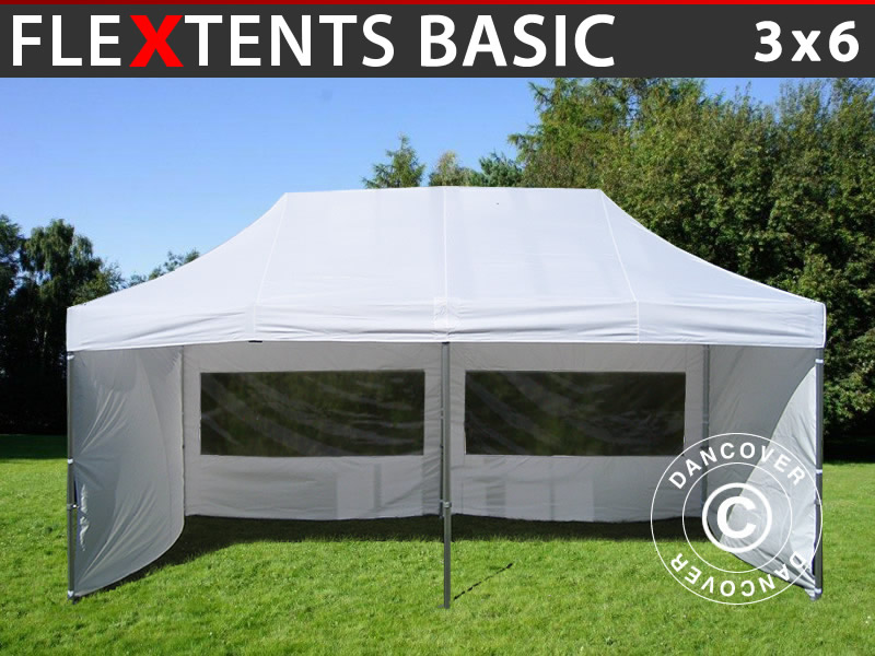 Med Foldetelt FleXtents Basic serien får du et komplet foldetelt med 6 sider som kombinerer funktionelt og elegant design med robust kvalitet. FleXtents Basic er ekstremt nemt at sætte op, og er ligeledes let at transportere og opbevare i den medfølgende taske. FleXtents Basic henvender sig til kunden, som ønsker en stærk pakkeløsning til markedets bedste pris!
