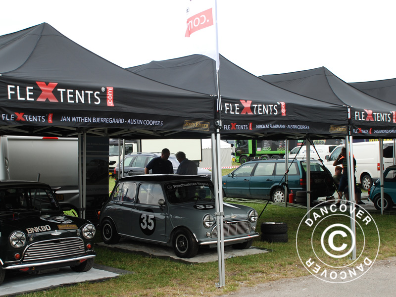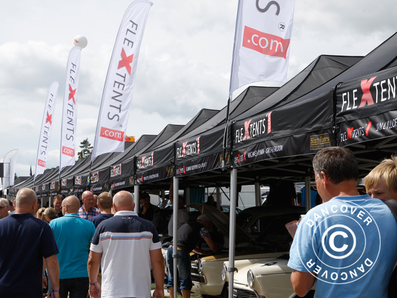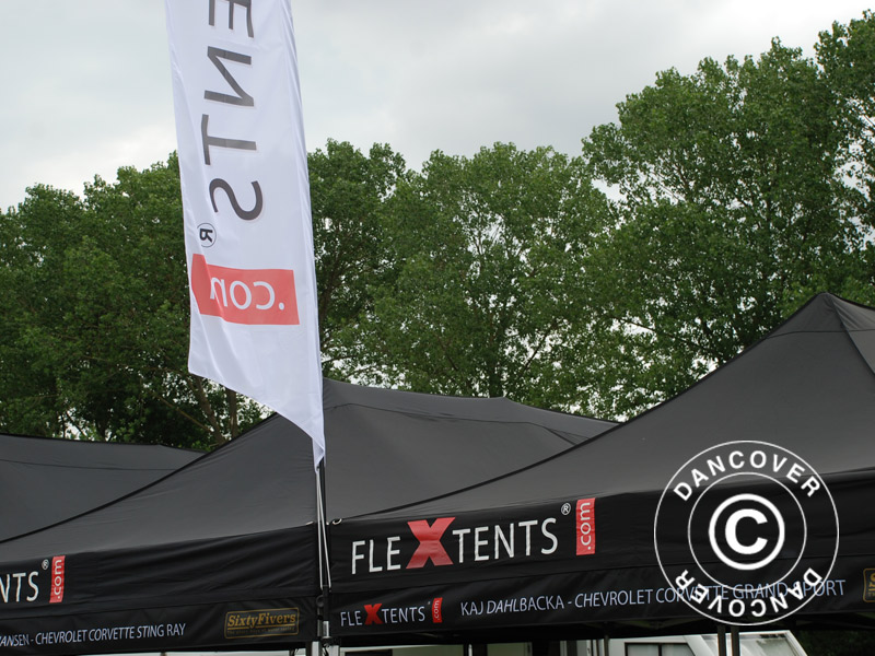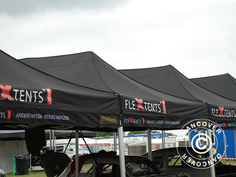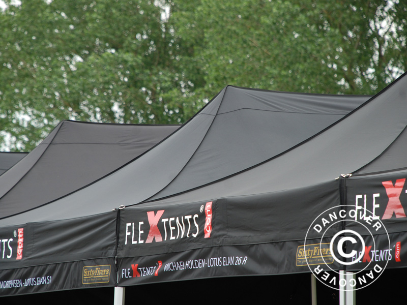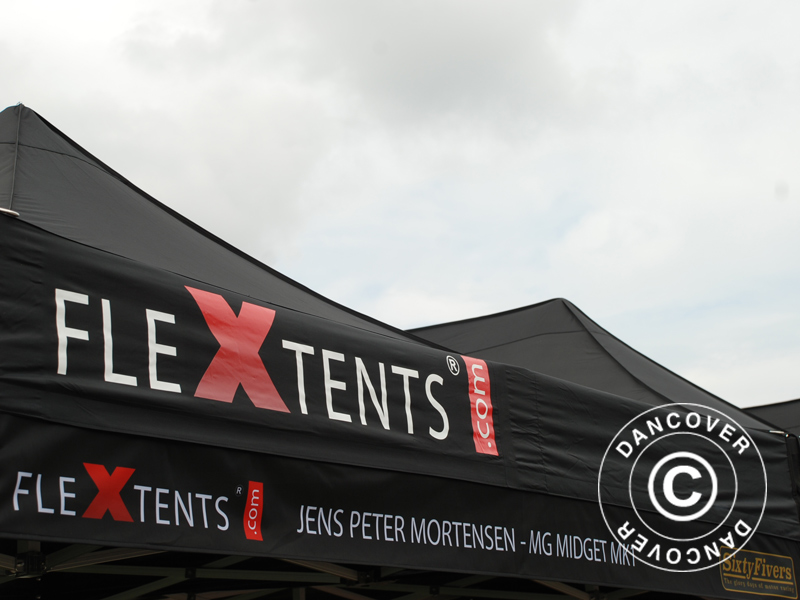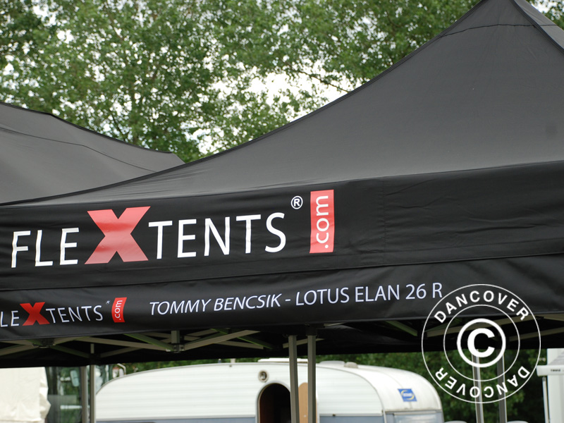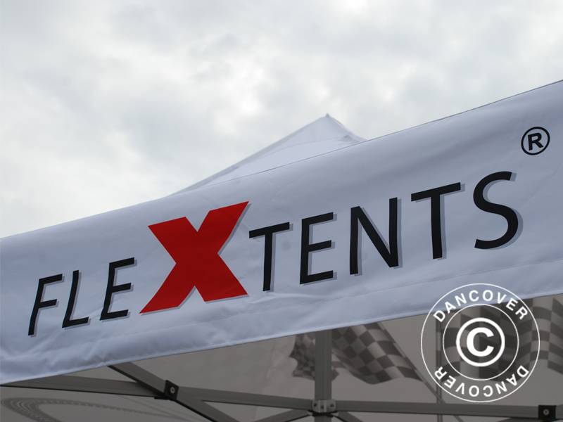 FleXtents er foldeteltet dit brand fortjener! Perfekt til at markedsføre dit budskab og brand. Vi tilbyder varm transfertryk i høj kvalitet på sidevægge, valance og på tagdugen af dit FleXtents for optimal professionel branding.
