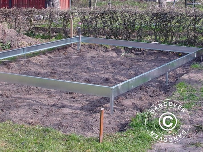Det er vigtigt, at din drivhussokkel monteres 100 % vandret og at drivhuset er i lod og vinkel. Den galvaniserede stålsokkel monteres på ben, der er nedstøbt i jorden. Så er soklen stabil og sikkert forankret. Derefter monteres drivhuset på soklen. Der skal ikke bruges specialværktøj til montering m.m.