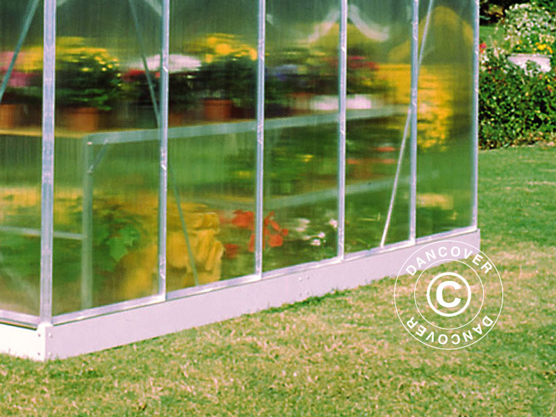 Vi anbefaler en tilpasset og galvaniseret drivhussokkel, der både vil skabe yderligere stabilitet og øge drivhusets samlede højde med 12 cm. Det giver sammen med den i forvejen gode sidehøjde på drivhuset en endnu bedre udnyttelse af hele drivhuset, så man kan få glæde af bl.a. agurker og andre klatreplanter helt ude i siderne af drivhuset. Det giver naturligvis også lidt mere rumfornemmelse, når man vil bruge drivhuset som lysthus og opholde sig i det helt særlige miljø, som et drivhus skaber.