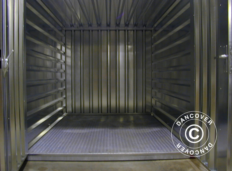Miljøcontainer i varmgalvaniseret stål med opsamlingskar i bunden til opbevaring af olie og kemikalier for beskyttelse af miljøet. Containeren er nem at samle og adskille med de medfølgende bolte, så du altid har præcis den mængde opbevaringsplads, du har brug for.