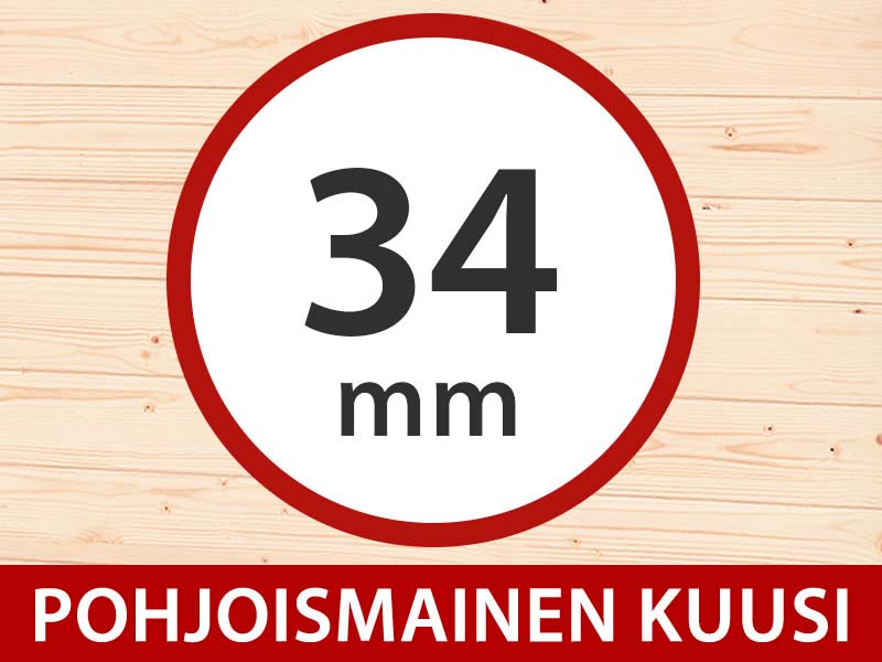 Korkealaatuinen vaja tai mökki on tehty 34 mm valikoidusta pohjoismaisesta massiivipuusta. Koska puu on saanut kasvaa hitaasti euroopan kylmemmillä alueilla, vajasi on tehty hyvin vakaasta, vahvasta ja kestävästä materiaalista, joka kestää pitkään, erityisesti jos huolehdit siitä. Kompaktissa puisessa vajassa on pulpettikatto, joten vettä ei kerry. Huomaa – kattohuopaa ei tule mukana!