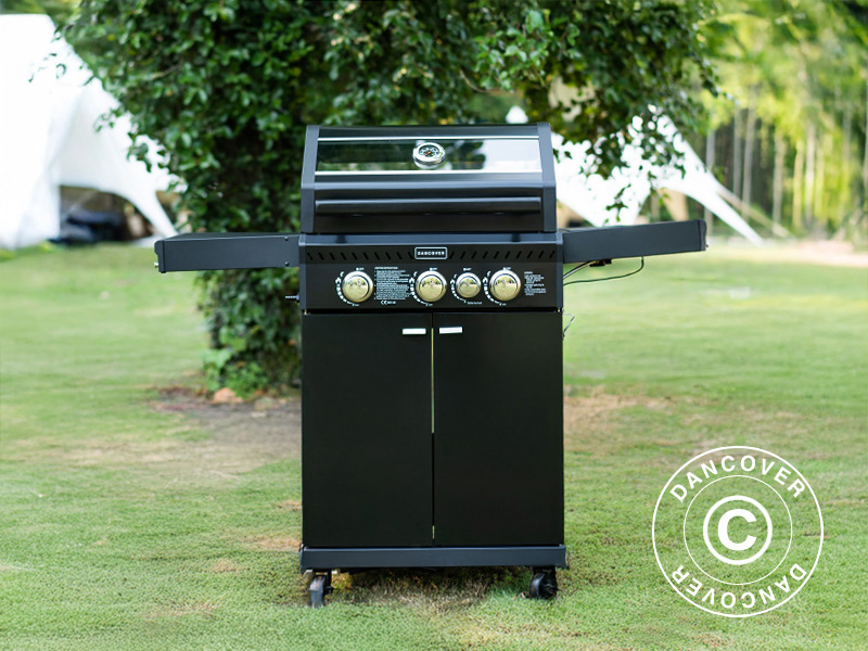 Barbecue à gaz élégant et puissant au design moderne et robuste – idéal pour sublimer votre cuisine en plein air. Ce barbecue offre une surface de cuisson totale de 59x43 cm, une étagère chauffante en acier inoxydable (60x12 cm), trois brûleurs principaux de 3,0 kW chacun, ainsi qu’un brûleur latéral de 2,5 kW. Il est équipé d’une grille en fonte, d’un pare-flammes émaillé en porcelaine et d’un couvercle à double paroi en acier poudré noir avec une fenêtre en verre et un thermomètre intégré. Parfait pour une cuisson précise et savoureuse sur votre terrasse.