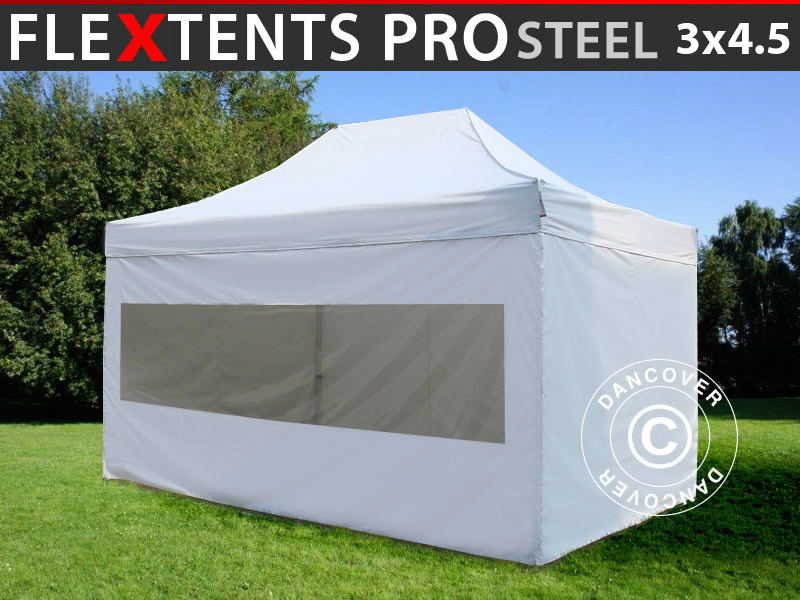 Brzo sklopivi paviljon FleXtents PRO Steel 3x4,5m, Bijela, uključ. 4 bočne stranice