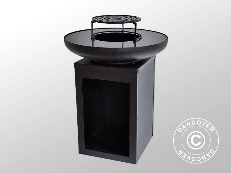 Ova elegantna posuda za vatru od ugljičnog čelika stoji na visokom, minimalističkom postolju koje prostoru na otvorenom daje dodatnu visinu i dozu elegancije. Povišen položaj pojačava vizualni dojam i čini roštiljanje ergonomičnijim. Čvrsta rešetka i BBQ ploča na vrhu omogućuju pripremu raznih ukusnih jela. Ugrađeni pretinac u podnožju služi kao praktično mjesto za pohranu drva i dodatne opreme. Izrađena od izdržljivog ugljičnog čelika, posuda za vatru zadržava svoj izgled i s vremenom postaje funkcionalno središte terase ili vrta.