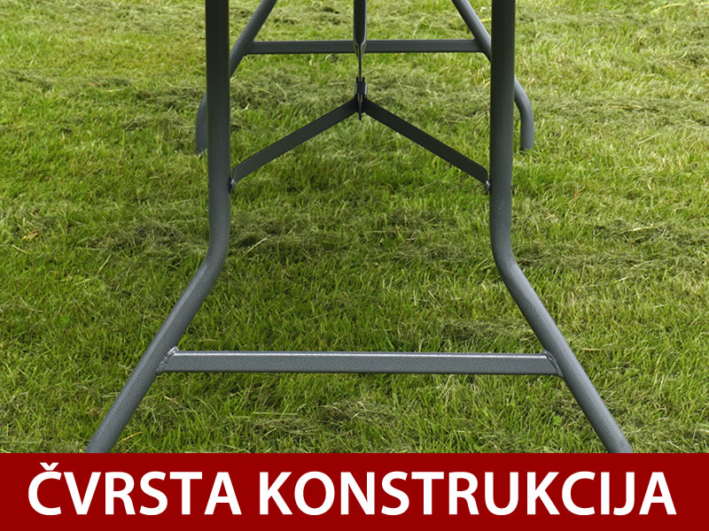 Sklopivi stol od čvrstih, laganih materijala, za događanja i proslave. Ovaj čvrsti sklopivi stol lako se otvara i zatvara, te zauzima vrlo malo prostora kada je sklopljen. Idealno za sve vrste događanja, gdje trebate mjesta za blagovanje gostiju i više toga. Molimo obratite pažnju! Zbog uporabe recikliranih materijala u procesu proizvodnje, površina stola može imati mat i strukturirani završni sloj.