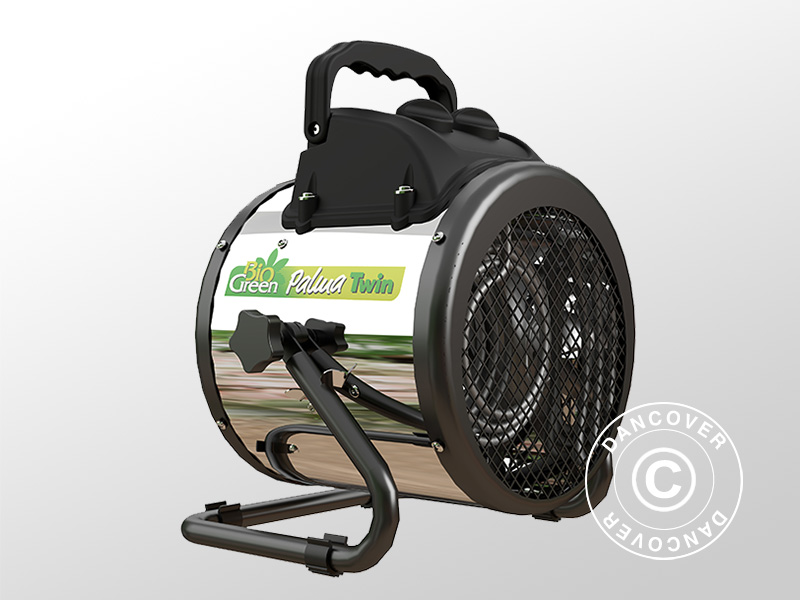 This compact, energy-efficient, safe greenhouse heater will protect your potted plants when storing them in your portable or stationary greenhouse during winter. It will also work small miracles on a chilly night if you want to stay a little longer in the greenhouse or orangery. The heater is easy to use, tiltable, and movable, and you just have to plug it in – no mounting or assembly necessary. Due to the compact design, anti-slip rubber feet and practical and foldable handle, you can use it almost anywhere. The Palma Twin greenhouse heater has an unrivalled output of 2000 W with 2 separate heating elements and an air circulation rate of 163 m³/h. You can also use the heater for air circulation without turning on the heat.