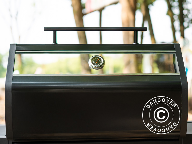 Elegante e potente barbecue a gas con un design moderno e robusto che porta la tua cucina all’aperto a un livello superiore. Questo barbecue dispone di un’ampia superficie di cottura da 82x43 cm, una mensola scaldavivande in acciaio inox (83x12 cm), cinque bruciatori principali da 3,0 kW ciascuno e un fornello laterale da 2,5 kW. È dotato di griglia in ghisa, paravento smaltato in porcellana e coperchio in acciaio a doppio strato verniciato a polvere nera con finestra in vetro e termometro integrato. Perfetto per grigliate deliziose e conviviali sul terrazzo.