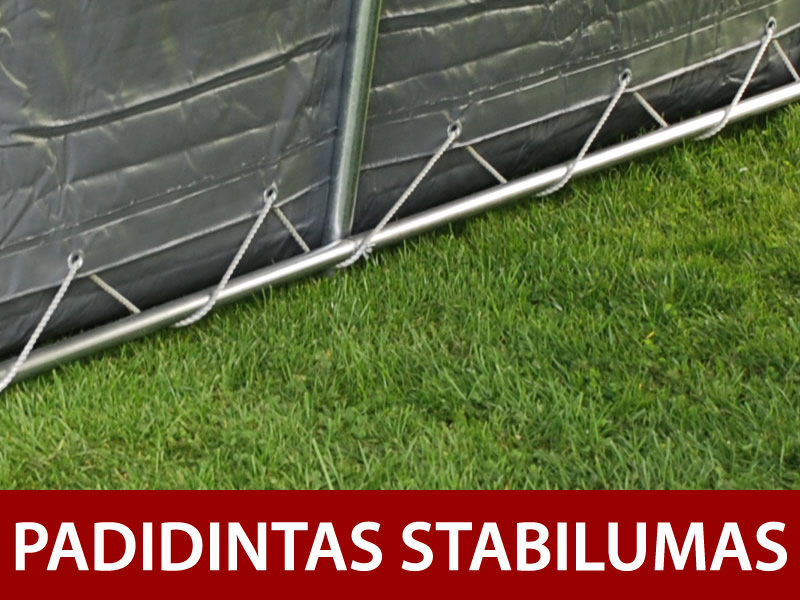 Perkeliamas garažas įvairiam sandėliavimui, kai norite prisitaikančio ir nebrangaus sprendimo. Perkeliamą garažą galite padėti beveik bet kur. Cinkuoto plieno rėmas ir vandeniui atsparus tentas užtikrins tinkamą vietą sandėliavimui! Lengva prieiga iš abiejų pusių su pilnomis tento durimis. Dėmesio! Šio modelio pieninis rėmas susideda iš 4 arkų (3 lankų).