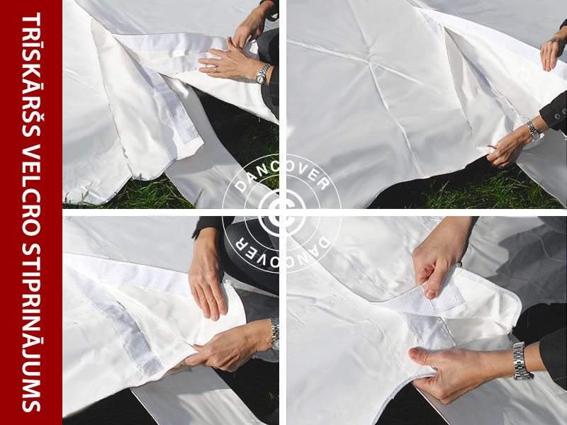 Iegūstiet 4 pasākumu teltis vienā! Ar CombiTents® pasākumu telti jūs varēsiet regulēt jūsu pasākumu telts izmēru, pielāgojot to katram pasākumam. Tā ir unikāla telts! CombiTents® pasākumu telts ļauj jums izveidot atbilstoša izmēra pasākumu telti ballītes vai pasākuma rīkošanai, izmantojot nepieciešamo telts posmu daudzumu. Tādējādi jūsu pasākumu telts nekad nebūs par lielu vai par mazu. Uzstādiet pasākumu telti ar inovatīvu Trīskāršu Velcro Stiprināšanas Sistēmu no Dancover un iegūstiet cieši nostiprinātu pasākumu telts materiālu. Aicinām ievērot, ka jūs varat gandrīz bezgalīgi pagarināt jūsu CombiTents® ar papildus posmu palīdzību. Papildus posmus ir nepieciešams pasūtīt atsevišķi!