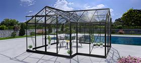 Estufas de vidro são belas e clássicas Estufas de vidro são estufas clássicas em alumínio com janelas feitas de vidro real – maior parte em vidro temperado, para a sua segurança. As janelas permitem que os raios de sol entrem para aquecer a estufa para que todos os pequenos milagres possam acontecer; quando sementes e mudas tornam-se em plantas cheias de pepinos, tomates, malaguetas, pimentões, várias cores e mais. Sem mencionar todas as belas flores em todas as formas, cores e tamanhos!...