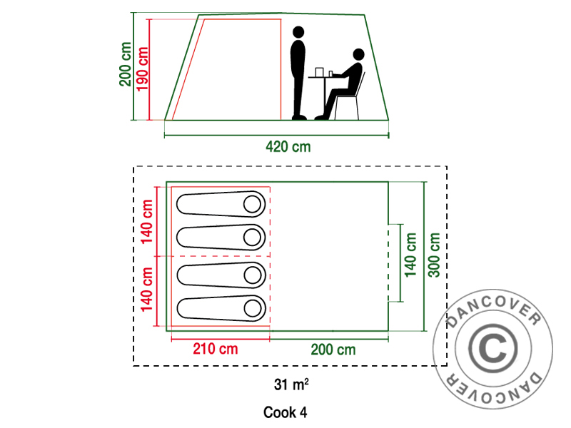 Den mångsidiga designen gör att du kan ta bort ett sovrum för att öka det interna levnadsutrymmet ifall vädret tar en vändning till det sämre, medan ett helt integrerat golvskydd ger ren, torr och insektsfri camping för upp till 4 personer.