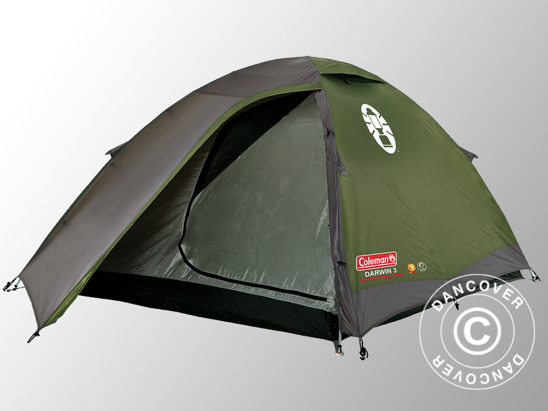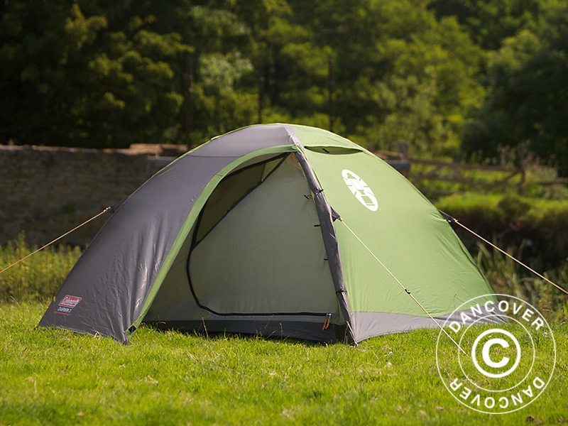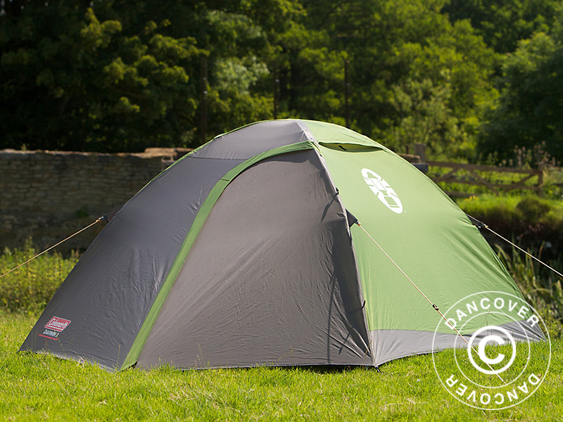 Lättmonterat tält med kupolstruktur och stolpfastsättning med ring och stift.