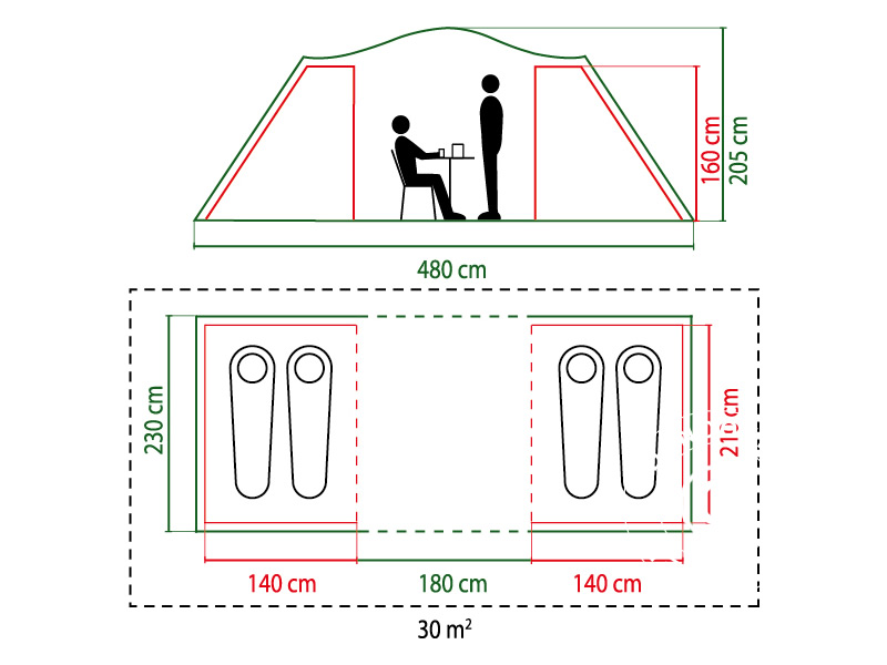 Med ett högkvalitativt campingtält av Coleman, kan du se fram emot massor av kul med din familj i detta trevliga tält, som både är rymligt och enkelt att sätta upp. Det ger dig mer tid att utforska naturen, spela spel och berätta historier runt elden. Detta familjetält av Coleman är perfekt för både resor med många stop där du måste sätta upp och ta ner tältet ofta, men även för resor där du bor längre perioder på samma plats. Tältet ger den komfort du vill ha, när du vill njuta av naturen utan att behöva oroa sig för någonting. Tältet har två sovrum som är placerade mitt emot varandra - vilket är perfekt när ni åker och campar med vänner eller tillsammans med äldre barn - och ett vardagsrum mellan sovrummen med god ståhöjd.
