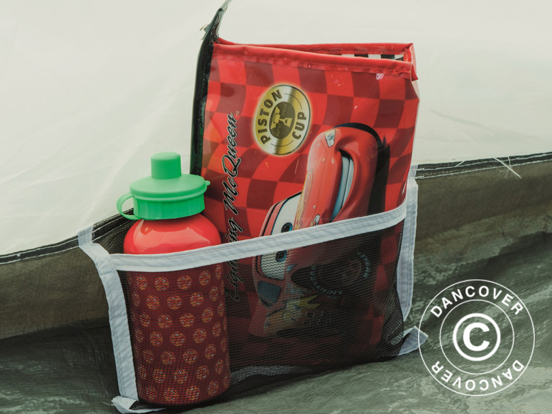 - Nätfickor i innertältet lagrar små saker säkert och praktiskt