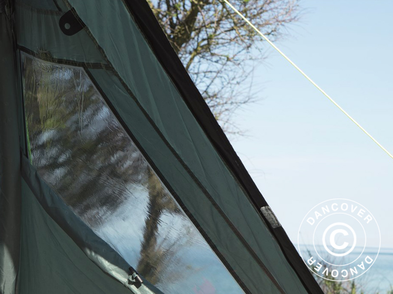 - Ventilation på baksidan av tältet gör så att luftflödet minskar kondens