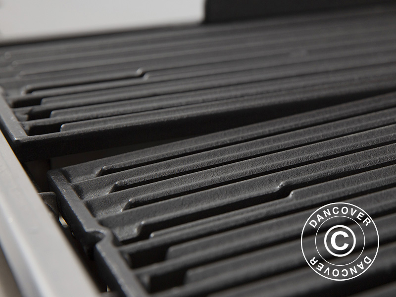 Elegant och effektiv Broil King® gasolgrill i modern och robust design som kommer att se bra ut på din uteplats och lyfta din grillupplevelse till en högre nivå. Broil King® Crown™ 420 har en total grillyta på 64x44 cm och en porslinsemaljerad värmningshylla. 4 brännare i rostfritt stål, dubbelsidiga grillgaller i gjutjärn och ett Flav-R-Wave™-grillsystem med vågformade rostfria galler. Kom ihåg att se de olika tillbehören vi erbjuder till den här grillen - ett robust lock, grillmatta för att skydda uteplatsen, praktisk grillverktygsset och mycket mer.